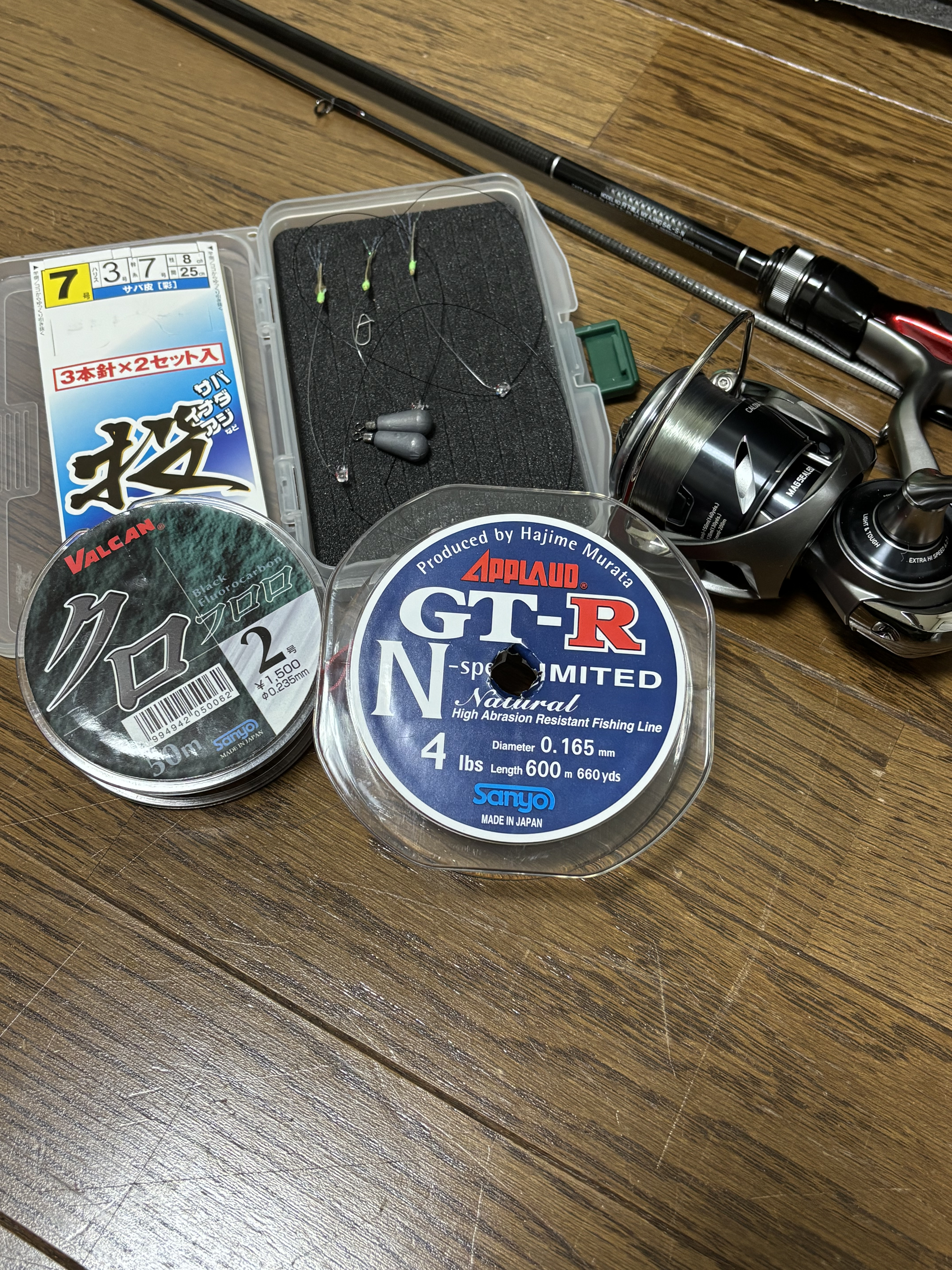 市販されてるサビキ仕掛けに巻き餌用のカゴは使わず、ナス型錘などのシンカーを付けて、